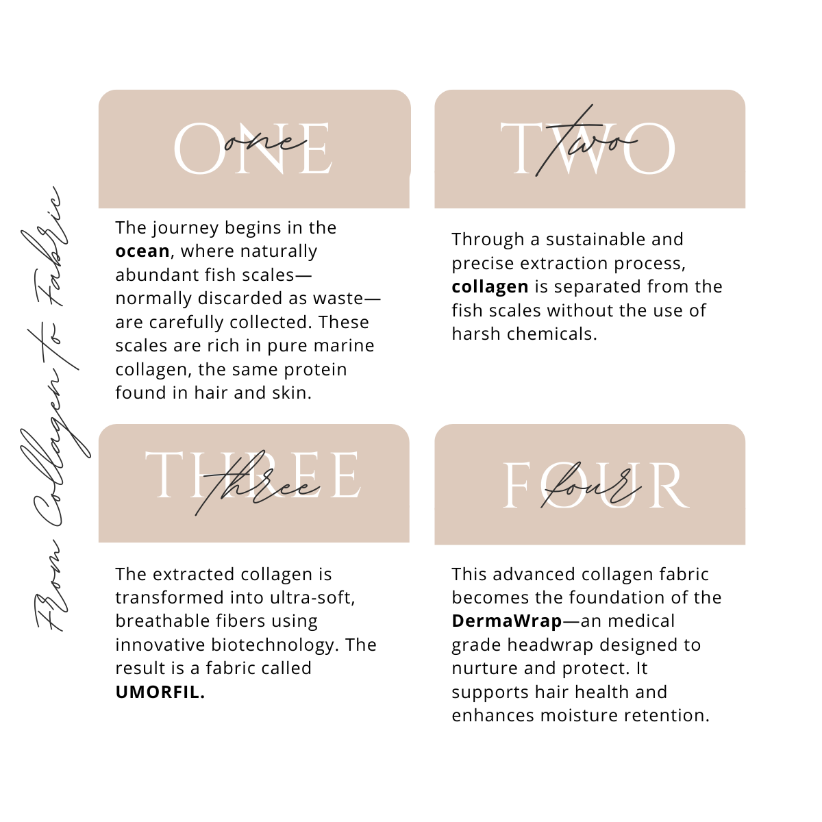 Experience the first-of-its-kind collagen headwrap treatment. Designed to hydrate, protect, and transform your hair AND scalp.